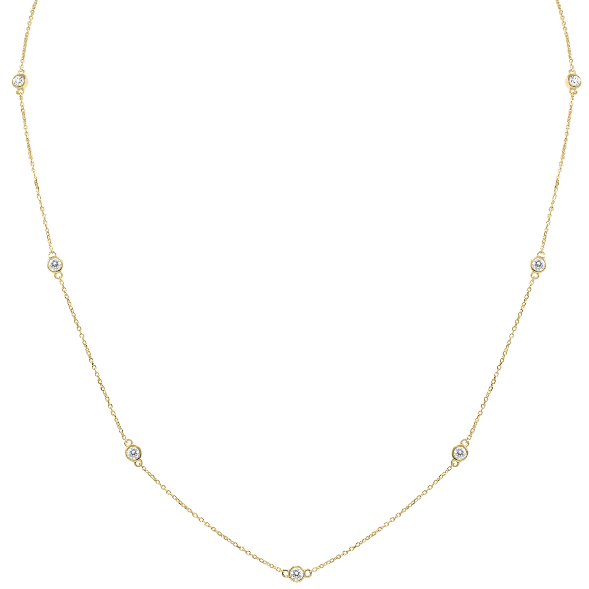 3/4 Carat TW Bezel Set Diamond Station Necklace in 14K Yellow Gold