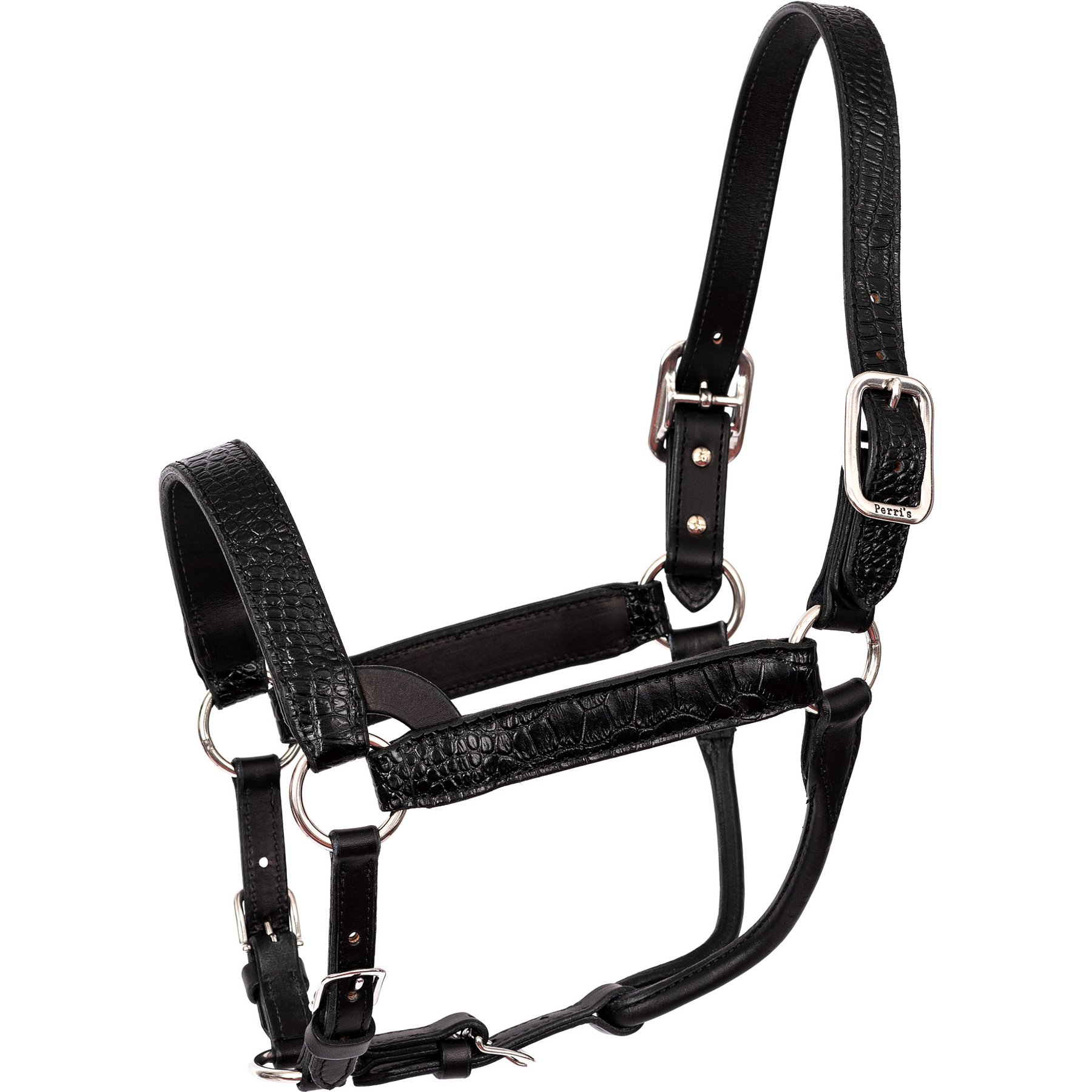Perri's Leather Western Crocodile Embossed Show Horse Halter, Black, Horse