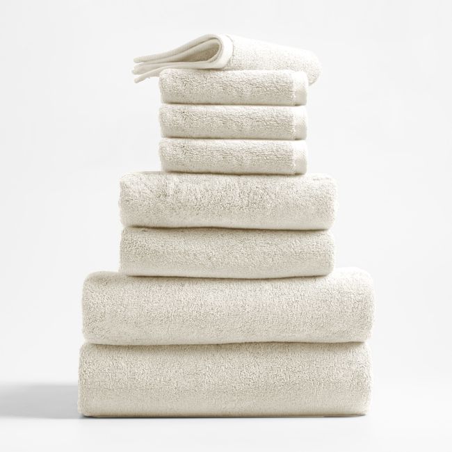 Organic Turkish Cotton Ivory Bath Towels, Set of 8