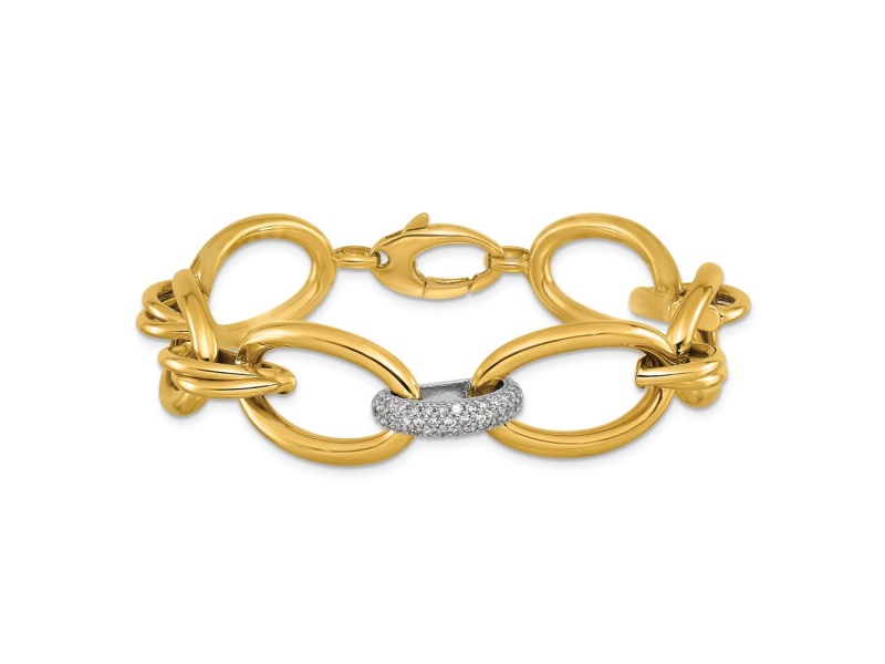 14K Yellow Gold with White Rhodium Diamond Oval 7.5-inch Bracelet 0.51ctw