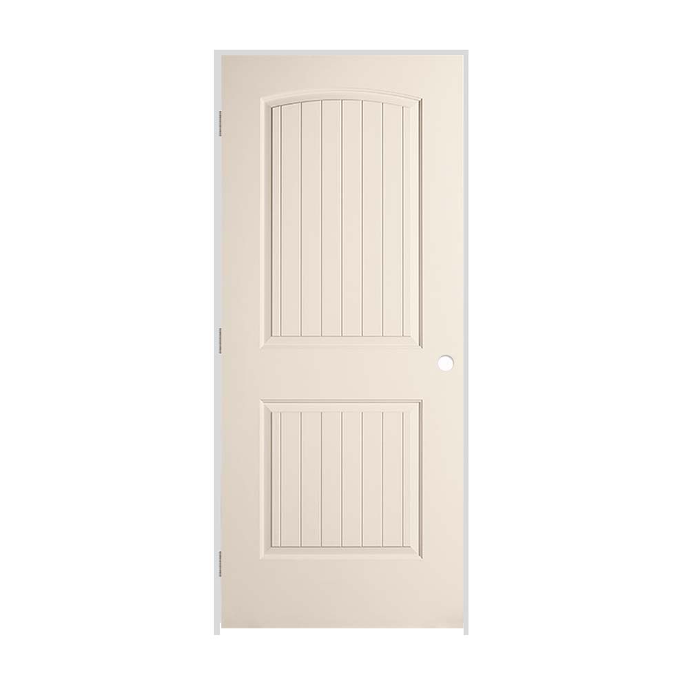 Trimlite 2168MHCSANRH154916 34" x 80" Primed 2-Panel Arch Top V-Groove Santa Fe Molded Hollow Core 4-9/16" Jamb Right Hand Prehung Door with Satin